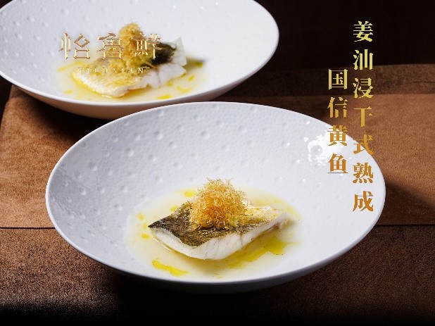 “怡鲁鲜”的寻鲜之味,就从这条野游大黄鱼开启。姜油浸国信黄鱼,以黄金姜蓉浸润鱼肉,再经干式熟成——这一曾用于高端牛肉的工艺,首次在野游大黄鱼上实现应用。国信深海野游大黄鱼的纯净鲜味,让这道传统鱼鲜有了更轻盈的现代表达。“最高端的食材,往往用最朴素的烹饪手法。”在“怡鲁鲜”品牌主理人郭科来看:“本味之上,需要一点调和的艺术。”