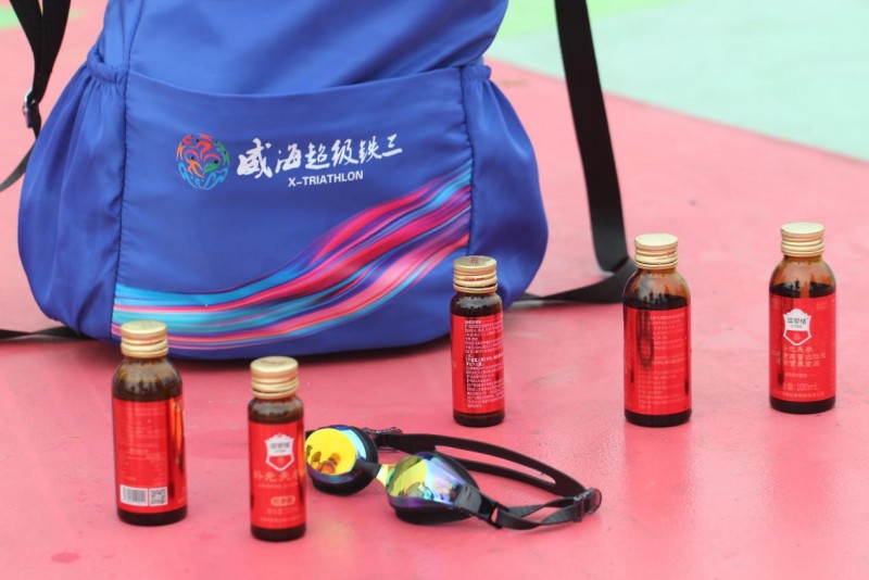 (环翠楼红参作为威海“铁三”官方指定用品放在选手参赛包中)